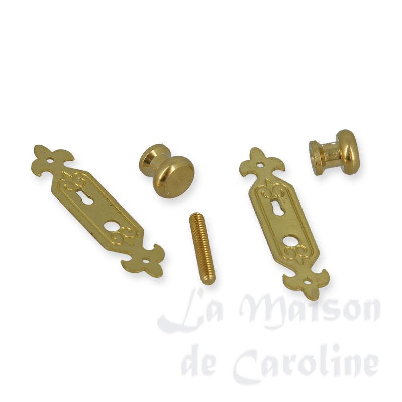 2 bouton porte avec plaque laiton lys