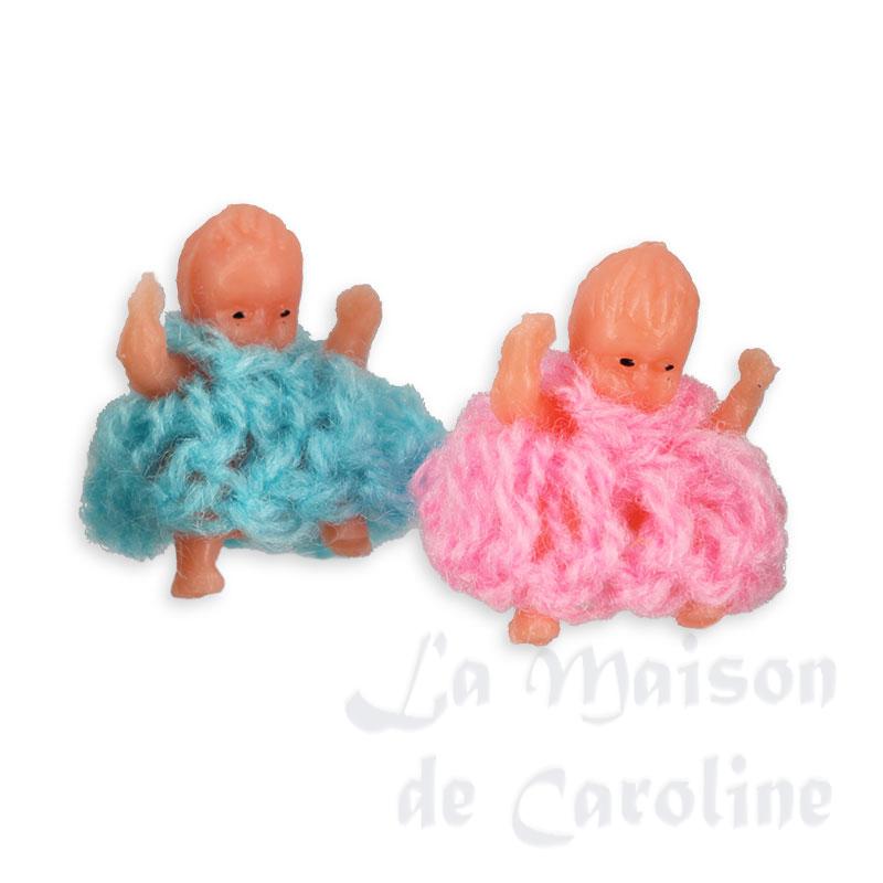 2 poupées avec pyjama bleu/rose miniatures 1/12ème