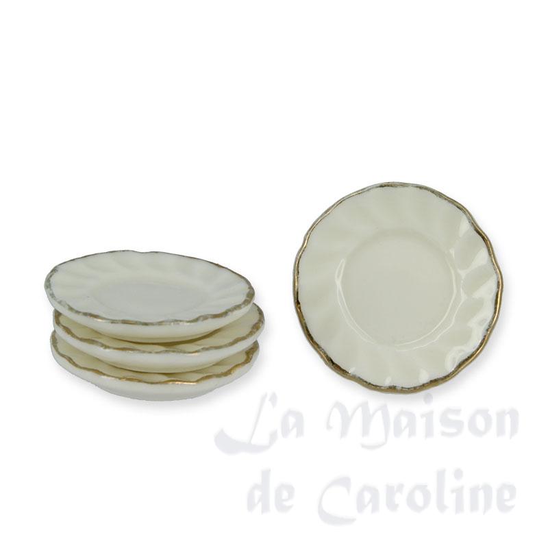 4 assiettes pocelaine blanc/doré miniatures 1/12ème