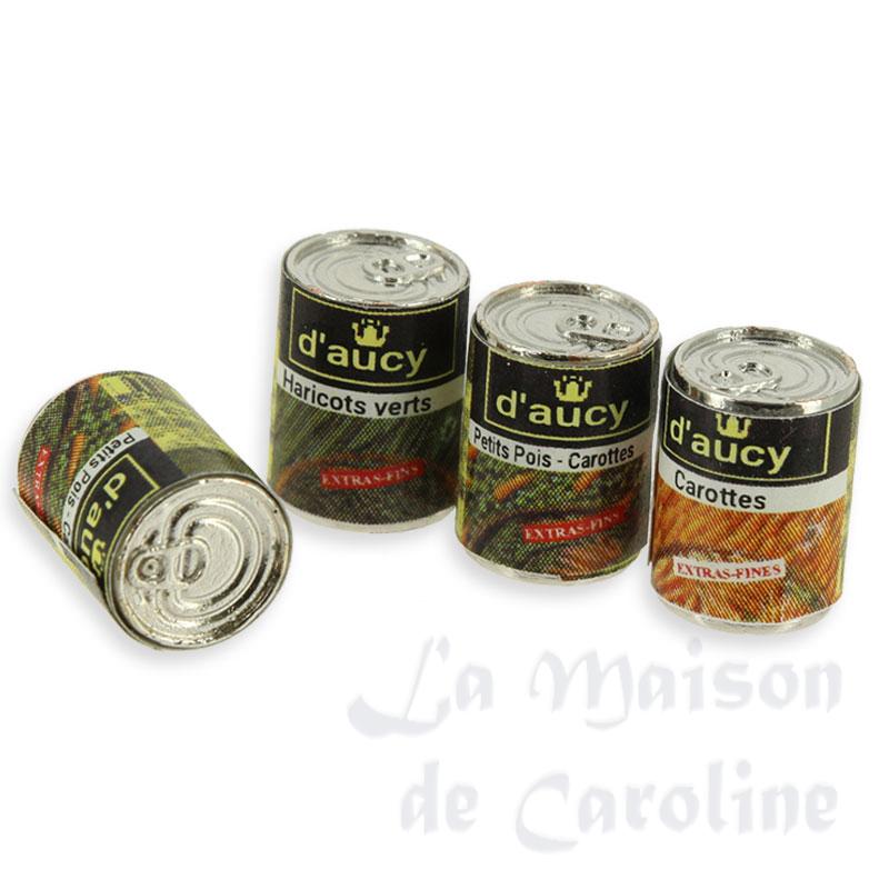 6 boites de conserves assorties en métal miniatures 1/12ème