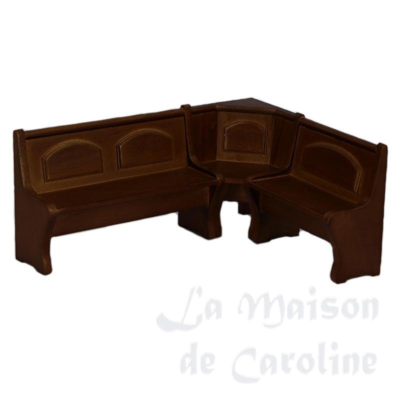 Banc d'angle pour cuisine en noyer miniatures 1/12ème