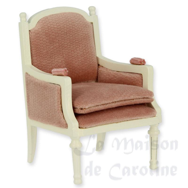 Bergère Louis XVI ivoire, velours rose miniatures 1/12ème