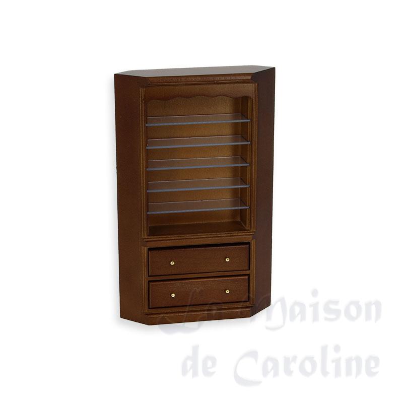 Bibliotheque tiroirs angle noyer miniatures 1/12ème
