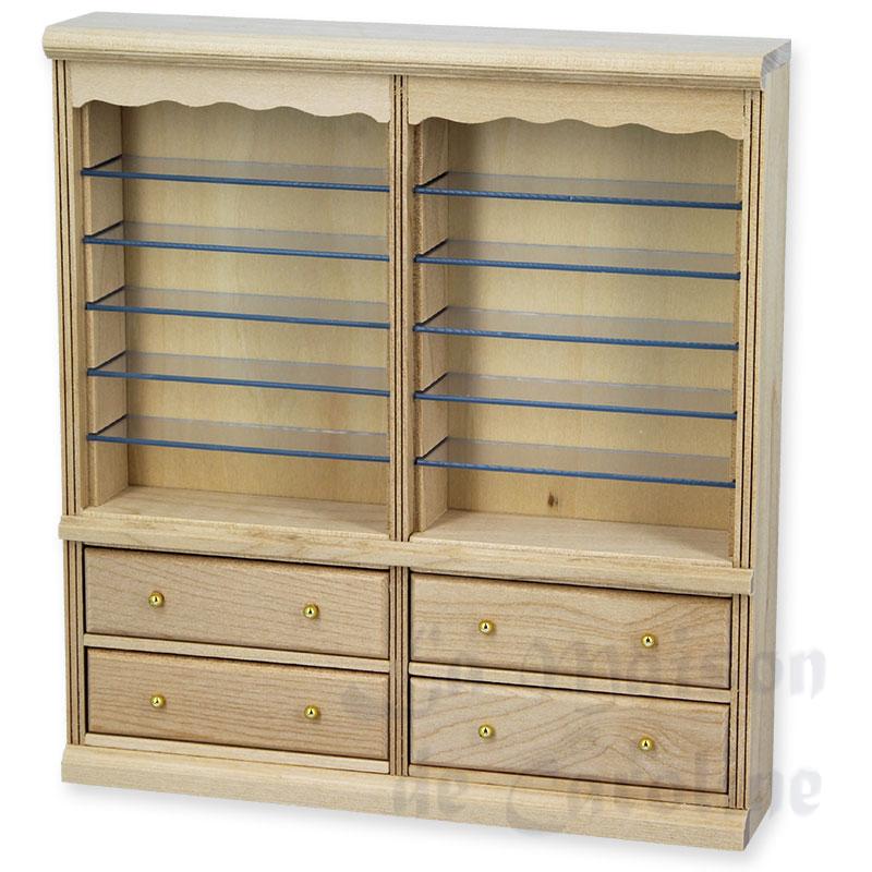 Bibliotheque tiroirs double non verni miniatures 1/12ème