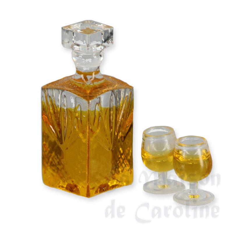 Bouteille de Whisky avec 2 verres miniatures 1/12ème