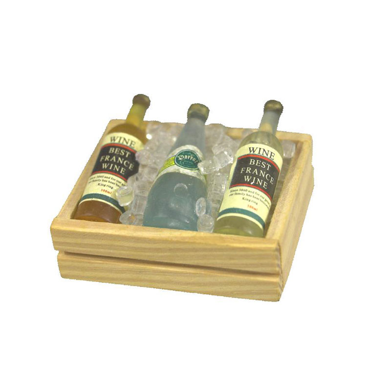 Caisse avec 3 bouteilles et glaçons miniatures 1/12ème
