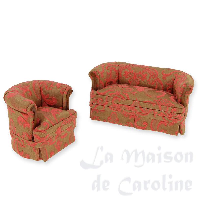 Canapé et fauteuil tissus marron rose Set 2 pcs