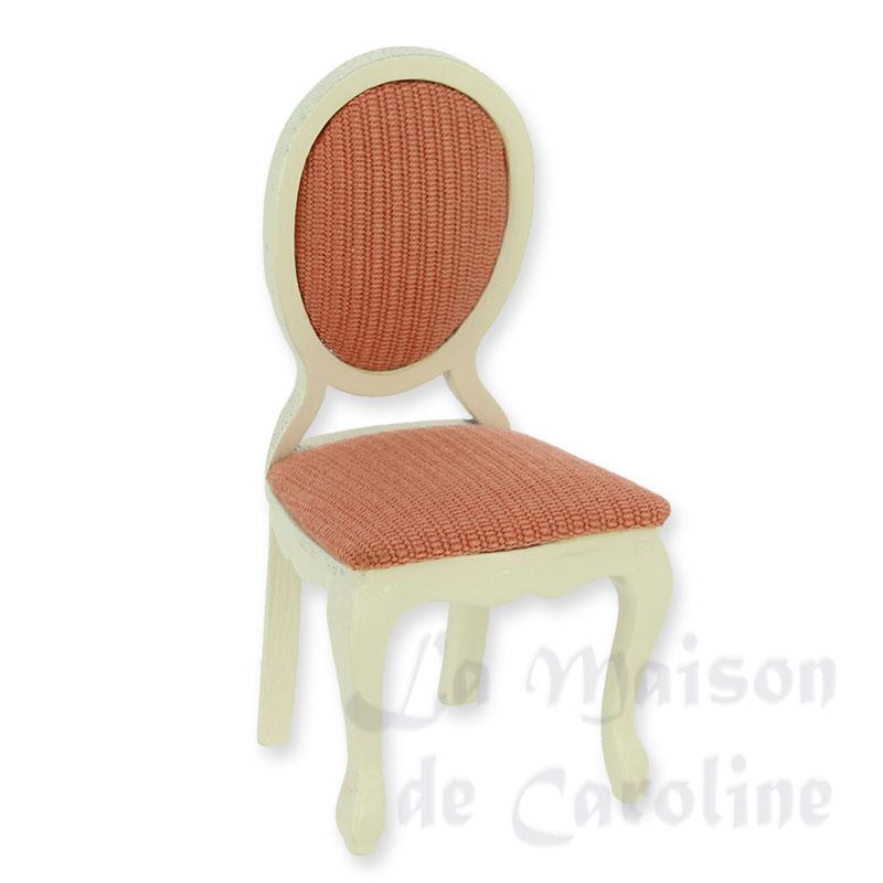 Chaise Louis XV ivoire, tissu rose miniatures 1/12ème