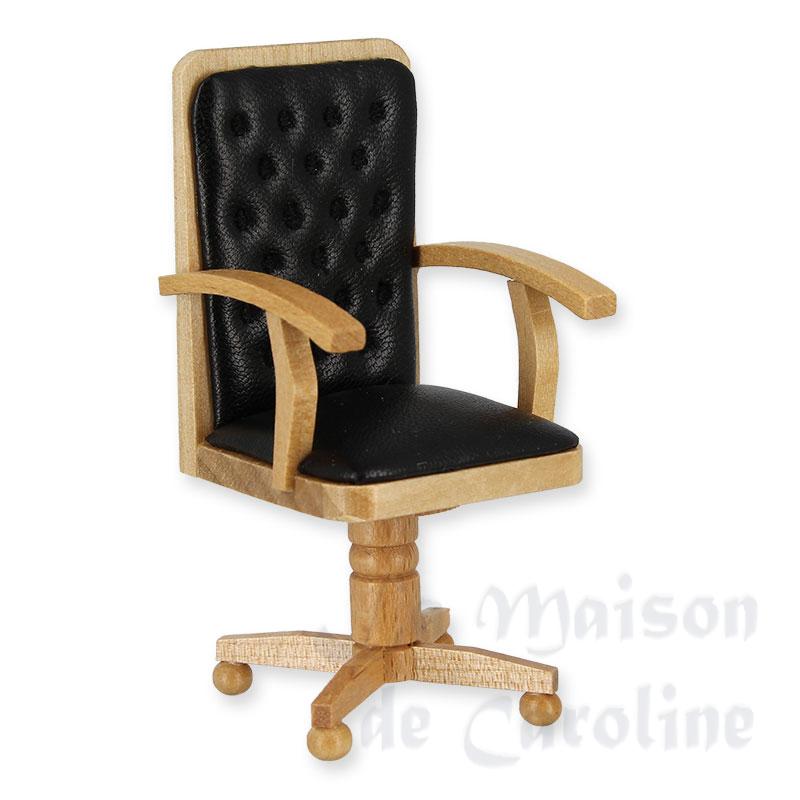 Chaise de bureau ch clair cuir noir miniatures 1/12ème