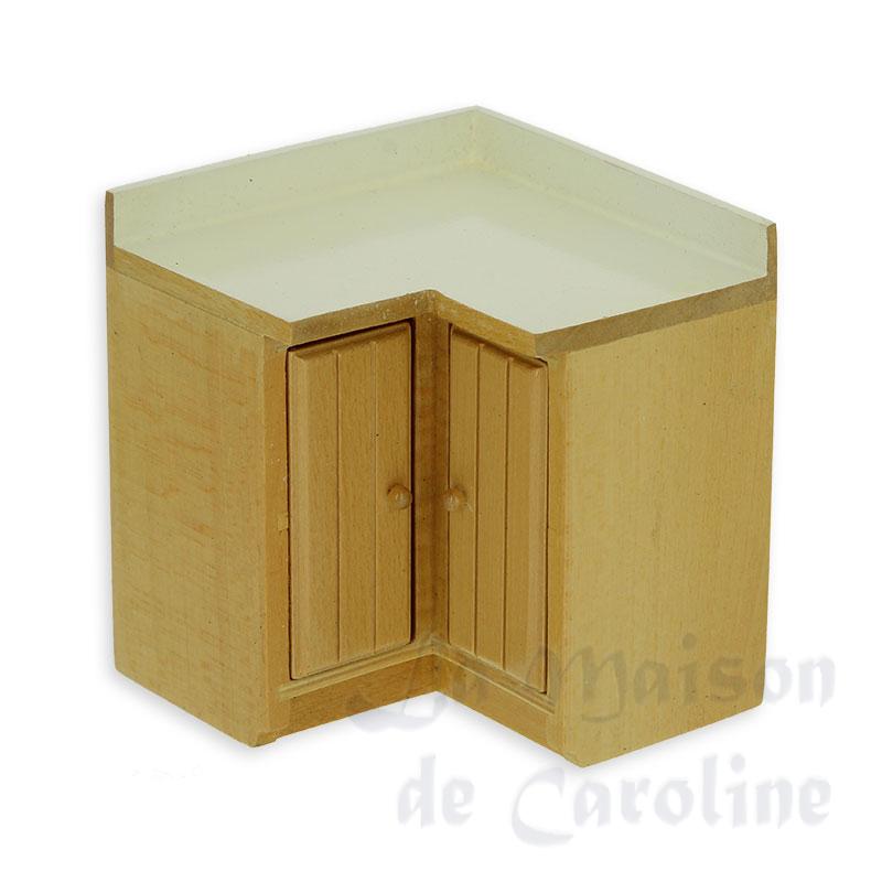 Elément de cuisine angle chêne clair plan travail blanc miniatures 1/12ème