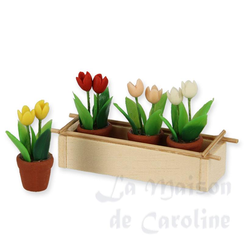 Jardinière avec 4 pots de tulipes miniatures 1/12ème