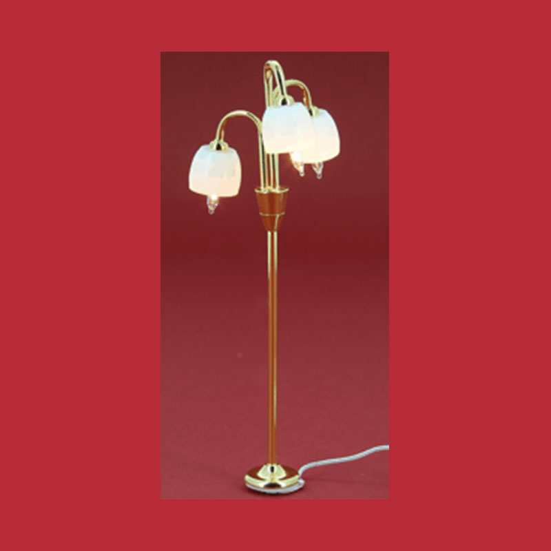 Lampe sur pied 12V en laiton avec trois abat-jour flûte dépoli