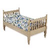 Lit à barreaux non verni, drap fleuri meuble miniature 1/12Lit à barreaux non verni, drap fleuri meuble miniature 1/12