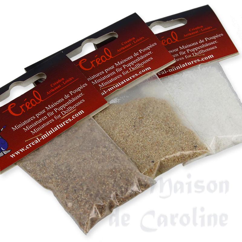 Lot de 3 sachets de sable blanc, beige, brun gros grains