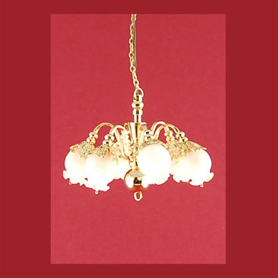 Lustre 12V 6 branches en laiton avec des abat-jour fleurs