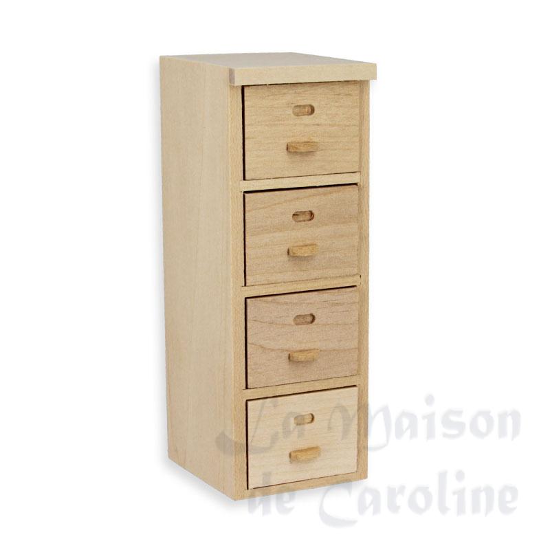 Meuble fichiers 4 tiroirs non verni miniatures 1/12ème