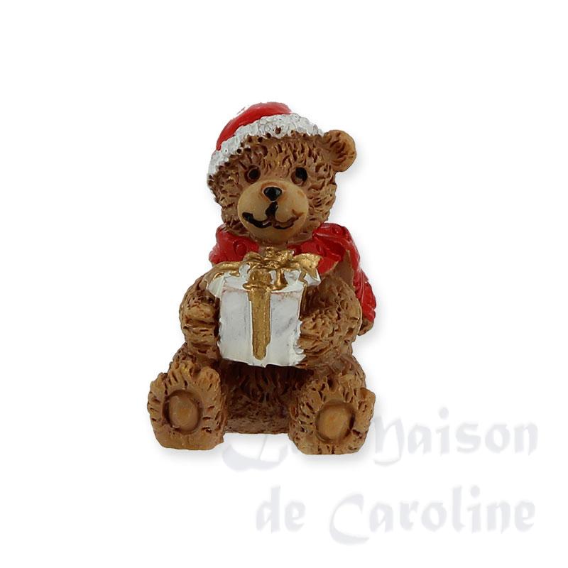Ours de Noel avec cadeau blanc miniatures 1/12ème