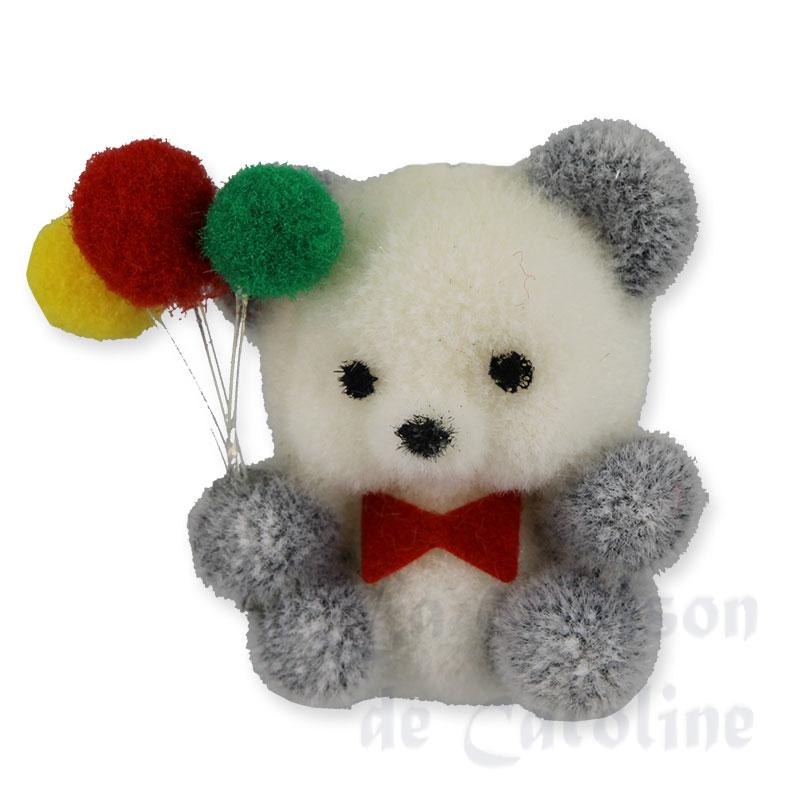 Ours peluche blanc/gris av.3 ballons miniatures 1/12ème