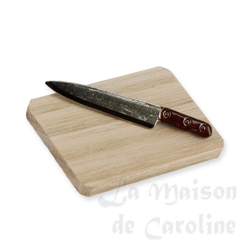 Planche à découper en bois avec couteau miniatures 1/12ème