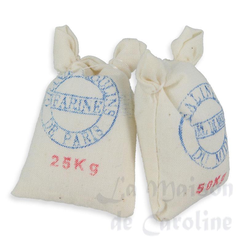 Sac de farine et sac de sel en tissus miniatures 1/12ème