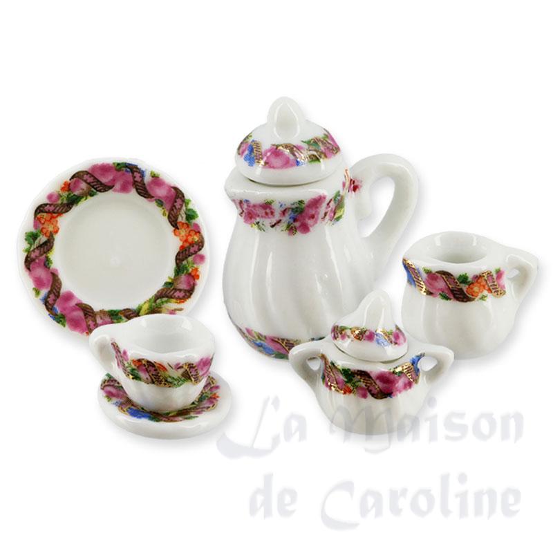 Service porc. octogonal 11pcs rose miniatures 1/12ème