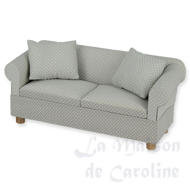 Sofa gris à pois avec 2 coussins miniatures 1/12ème