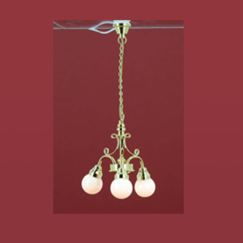 Suspension 12V en laiton avec trois abat-jour globe dépoli