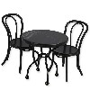 Table bistrot marbre noir avec 2 chaises noires meuble miniature 1/12Table bistrot marbre noir avec 2 chaises noires meuble miniature 1/12