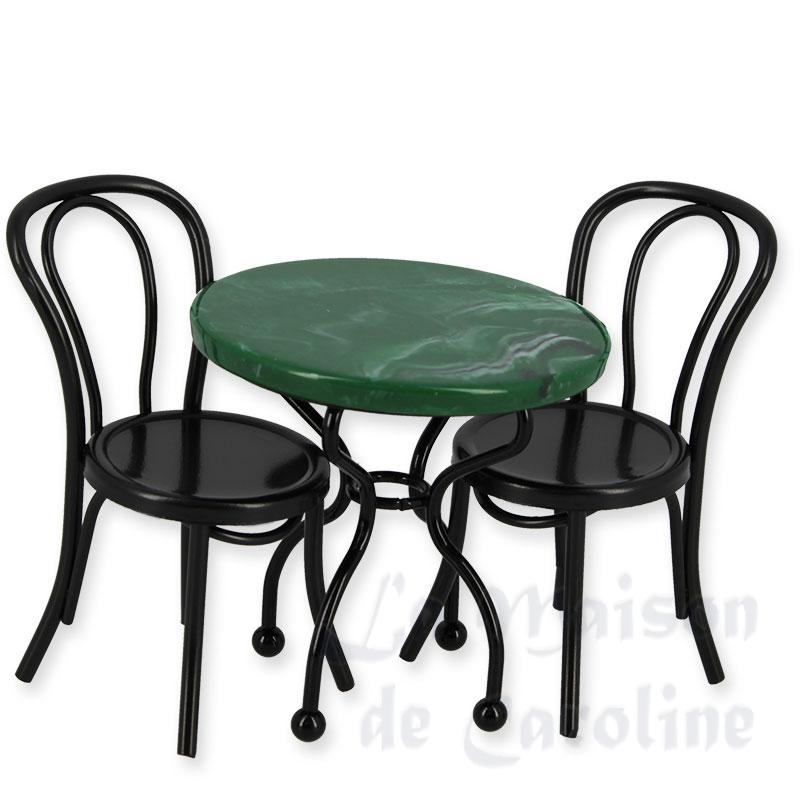 Table bistrot marbre vert avec 2 chaises vert miniatures 1/12ème