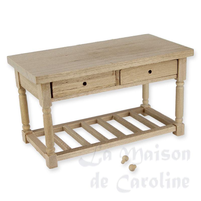 Table de cuisine av tiroirs non verni miniatures 1/12ème