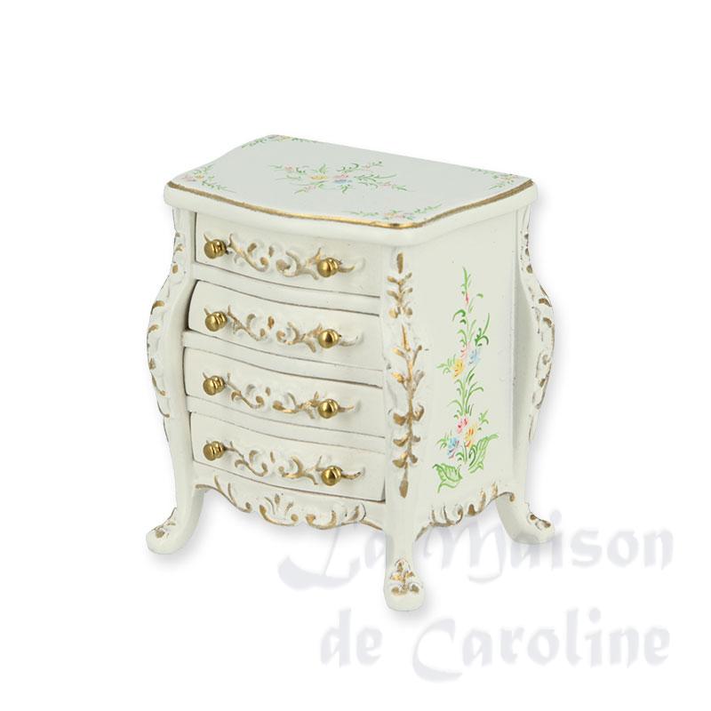Table de nuit Louis XV ivoire-fleurs