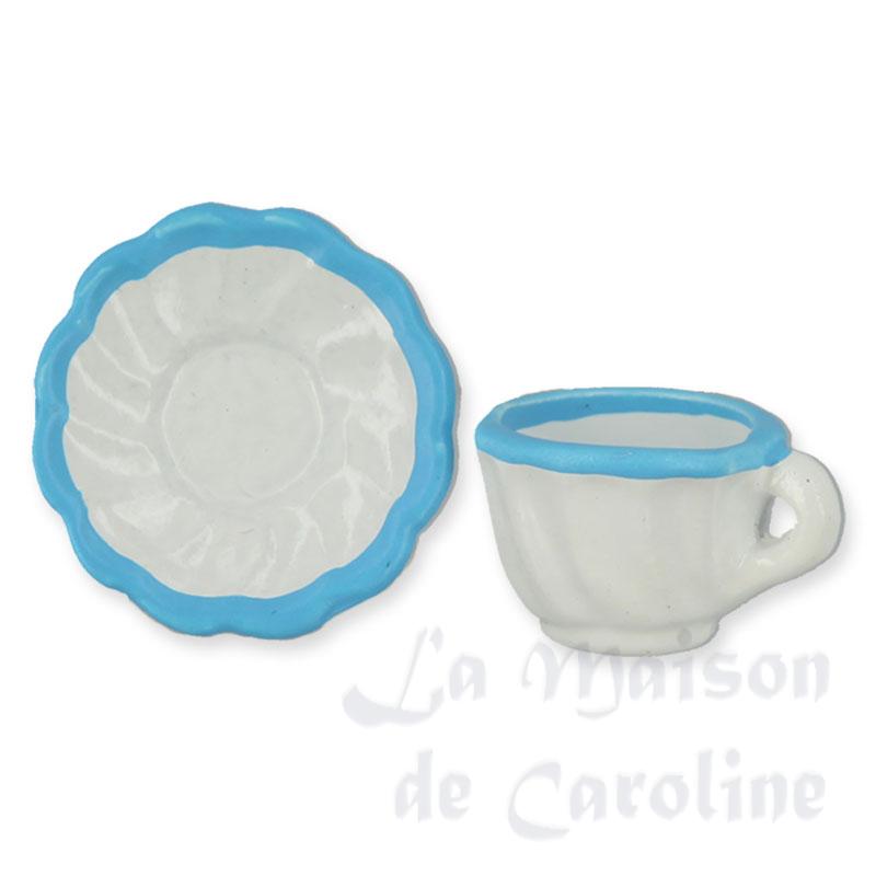 Tasse et sous-tasse bleue miniatures 1/12ème