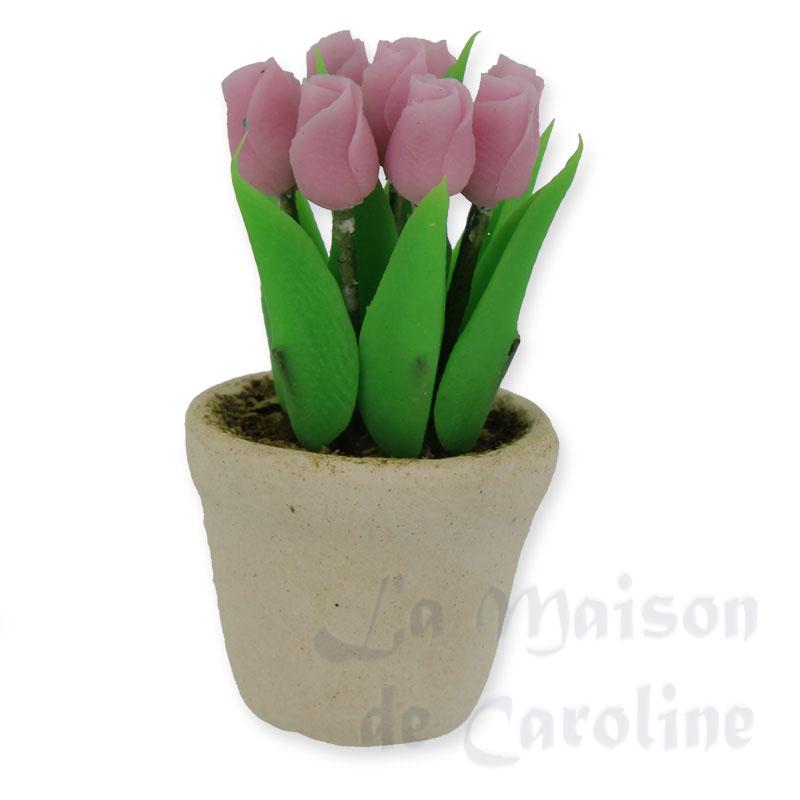 pot de tulipes rose miniature 1:12